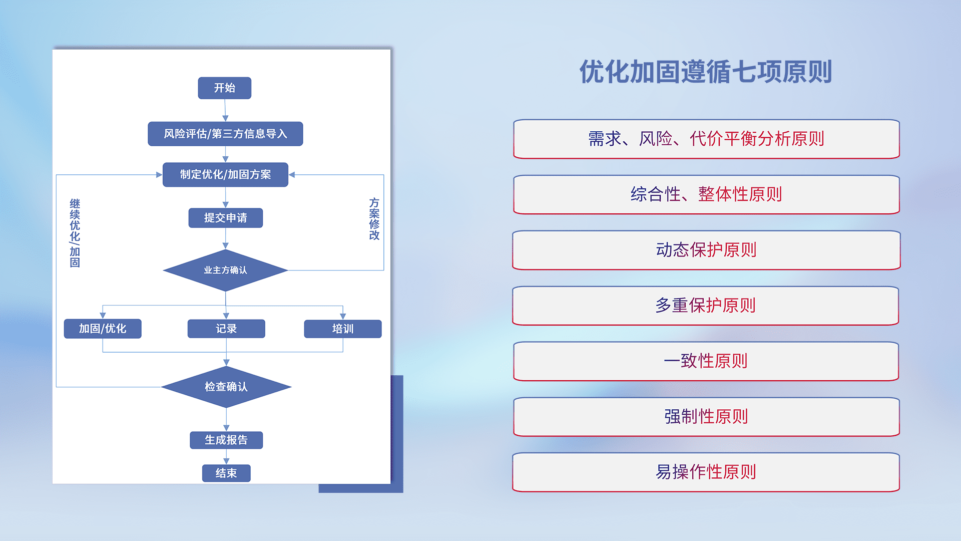 最大程度利用现有资产,,,,对评估发现的问题进行封堵与整改,,,,防止漏洞被利用,,提升整体网络安全性,,,为客户带来高标准的优化加固服务。。